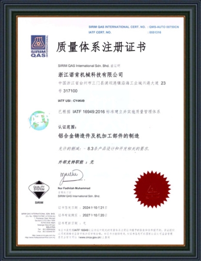 浙江諾肯機械科技有限公司(原黃巖新興機械配件有限公司)成立于1983年,坐落于浙江省東海之濱臺州市三門縣沿海工業城,現有員工160余人,總體占地面積40000平米。公司秉承“誠信為本、精工細作”的精神,現已發(fā)展成為集研發(fā)、制造及營銷為一體的鋁合金精密鑄件生產基地,為客戶提供精密鑄造、熱處理和精密機加工的一體化解決方案。